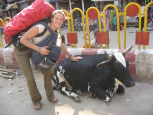First picture is of a crowded Indian train from Delhi to Agra, and the second is me just posing with a cow in Varanasi.