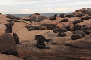 The next day, I headed to a small place called Cabo Polonio, recommended to me initially by a college classmate. The way others described this place made it seem so unique it couldn’t be missed. To get to Cabo Polonio, we took a bus, which dropped us off on the side of the road, where these large 4×4 trucks were waiting. After a 20 minute ride through sand dunes and along the beach, we arrived in Cabo Polonio. It was pretty cold, the sky was gray and the wind was blowing and it reminded me of a sparsely populated area of Maine or Maritime Canada. We arrived (I was with the 4 Denverites) and decided to rent a shack rather than stay in one of the 3 hostels. The entire town is without electricity and the main attraction is candle-lit dinners, decent surfing and Uruguay’s second largest sea lion colony.