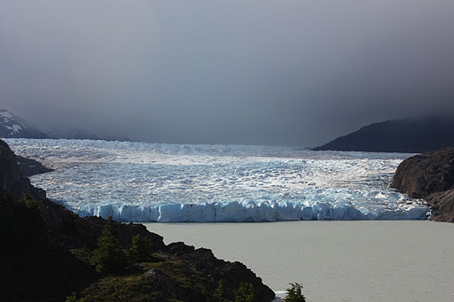 We had wanted to hike the full circuit, but due to time constraints, we opted just to do the more crowded, and more popular ‘W’ trek. We hiked west to east. Our first day, we took a catamaran across a beautiful turquoise lake, which we later learned would be dotted throughout the park. It was somewhat of a contrast – riding on a boat on waters that reminded me of the ocean around Indonesian islands, and yet, there were massive, glacier- covered peaks looming in the background. We met up with a really sweet Dutch girl, Moniek, and after lunch, hiked up to Glacier Grey. The hike was beautiful and the moment I enjoyed most was coming to the crest of a hill, looking out, seeing a beautiful turquoise lake with a massive glacier field at the far end of it. I’ve never seen anything quite like it before and I thought it to be quite stunning.