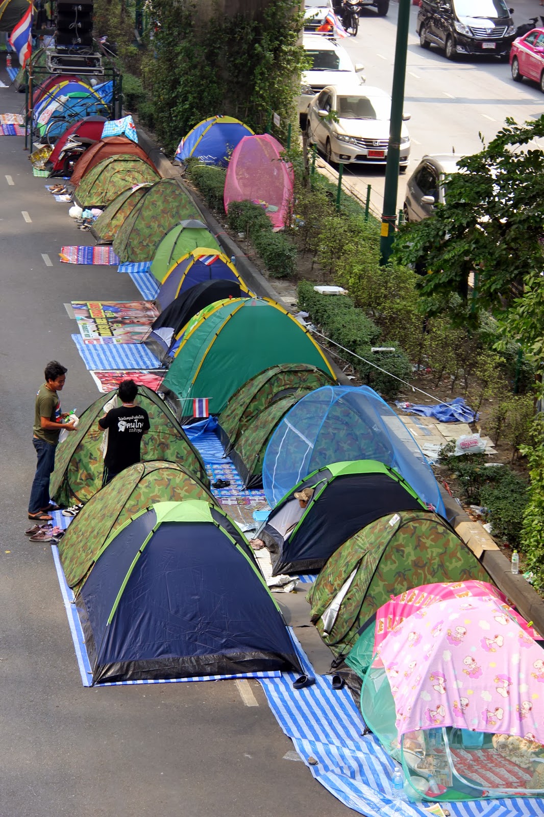 | Tents line Sukhumvit, part of the political protest |